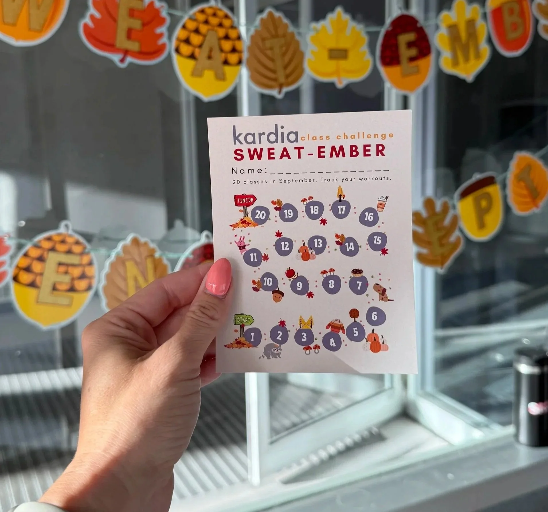 📍 Stop by the studio to pick up your SWEAT-ember Tracking Card, start booking your classes now, and let’s sweat our way into fall together.